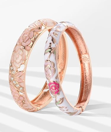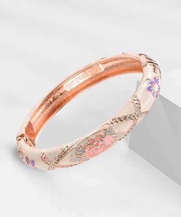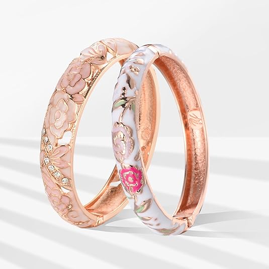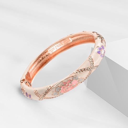 Vintage Jewelry Cloisonne Handcrafted Enameled Gorgeous Rhinestone Rose Hinged Cuff Bracelet Bangles Gifts