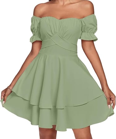 Women's Tie Back Off Shoulder Wrap Layer Ruffle Short Sleeve Mini Dress