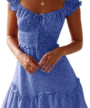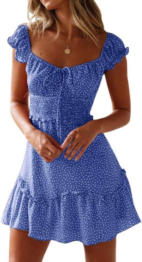 Womens Summer Ruffle Sleeve Sweetheart Neckline Printing Dress Mini Dresses