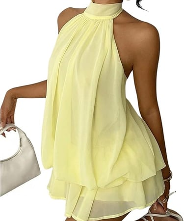 Women's Chiffon Halter Drop Waist Wedding Guest Dresses Ruffle Summer Mini Dress Brunch Outfits