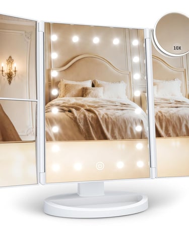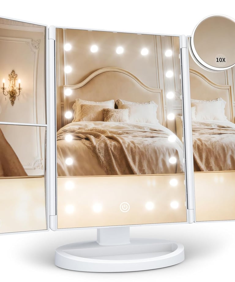 Makeup Mirror, Vanity Mirror with Lights, 2X/3X/10X Magnification, Touch Control, Trifold, Dual Power Supply