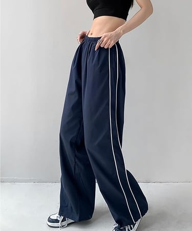 Womens Parachute Pants Wide Leg Baggy Pants Y2K Elastic Waist Jogger Sweatpants Track Pants Streetwear