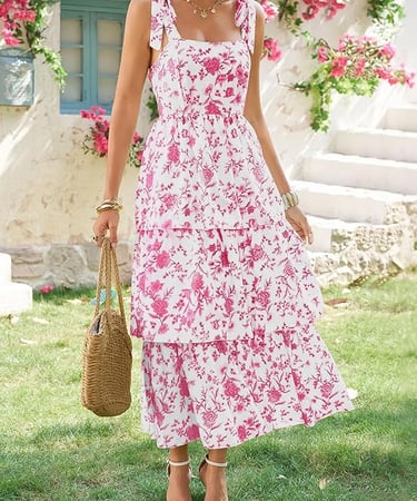Summer Floral Maxi Dress Casual Tie Strap Sleeveless Ruffle Loose Boho Beach Dresses