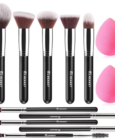 BEAKEY Makeup Brushes Set, Professional Foundation Eyeshadow Concealer Blush Powder Bronzer Applicator, 2 Blender Sponge with Beauty Paper Case