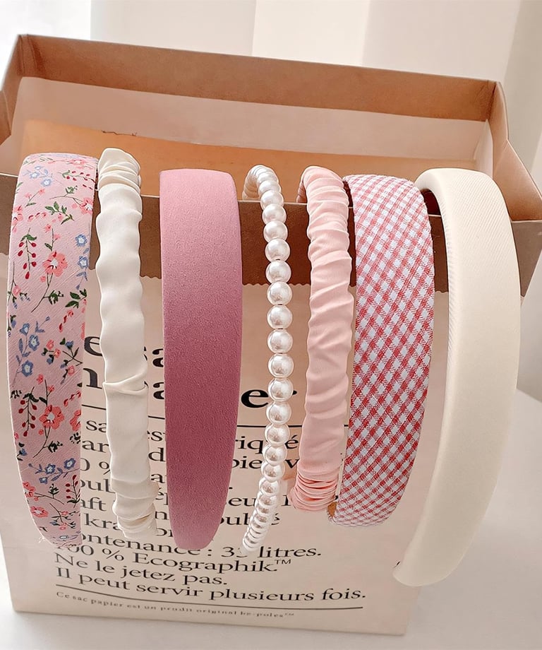 Headbands for Women Girls, 7pc Set - Non Slip Floral Padded Headbands Cute Pearl Headband for Girls Vintage Wide Headband